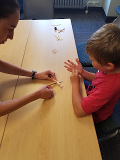 Next, they learned more about flight by making little paper helicopters. These twirl down when dropped!